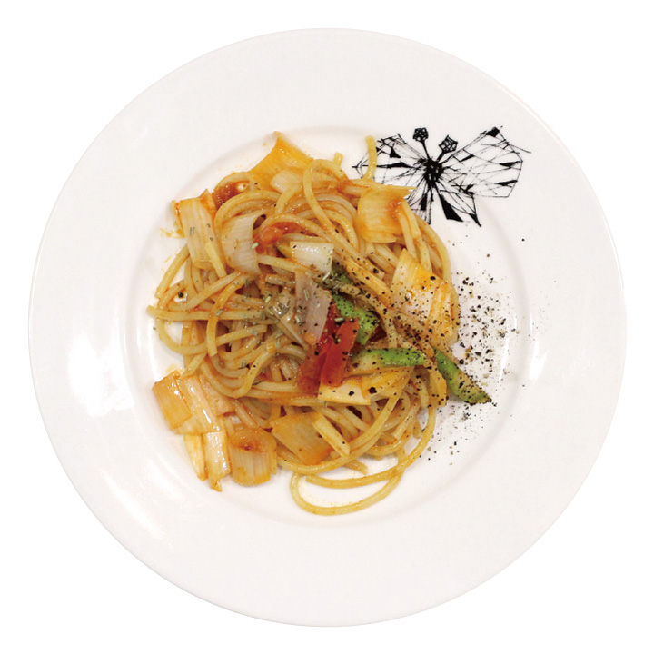 - 火を止め、切った二.をちらし、軽く絡めて皿に盛り付ける。